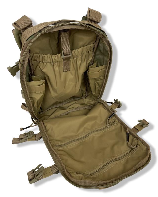 - стропы системы MOLLE на передней и боковых частях рюкзака для крепления дополнительного снаряжения