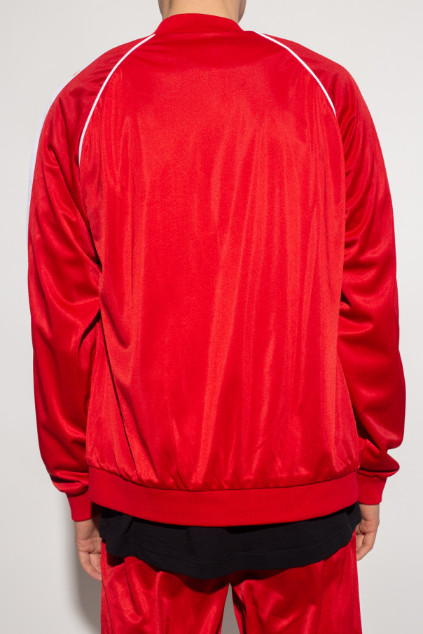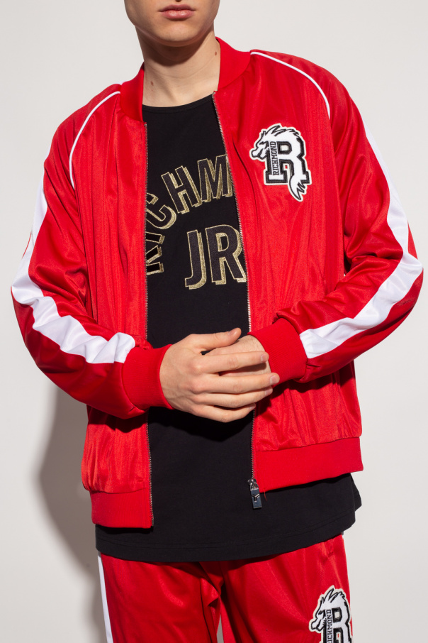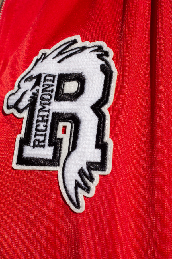 Red sweatshirt from John Richmond. Emblazoned with a logo patch, this style features a zip fastening, two slip pockets and an elasticated bottom hem and cuffs.
