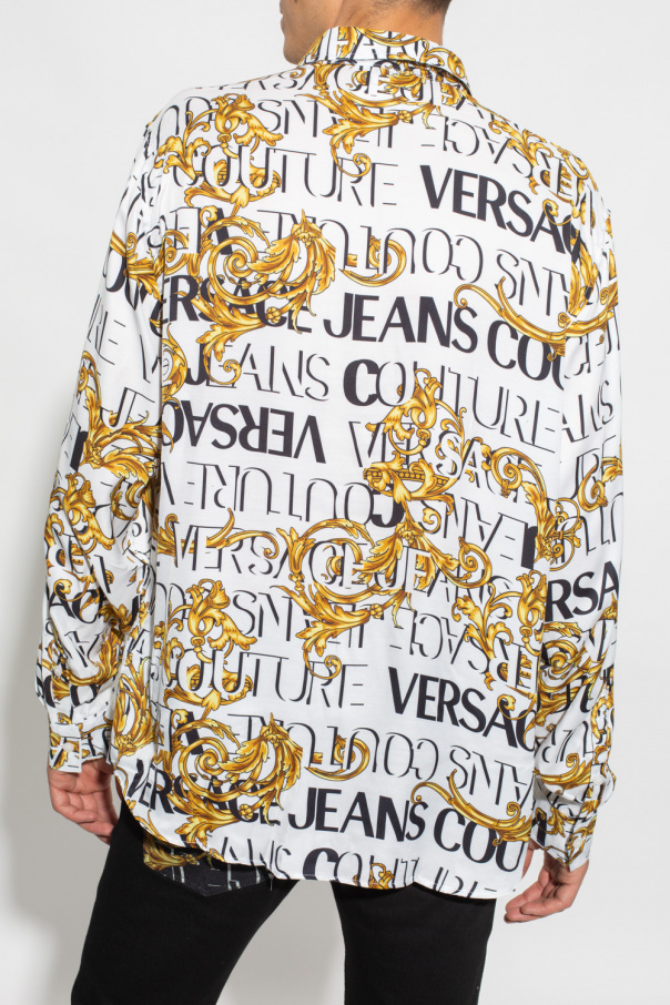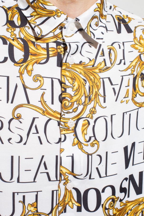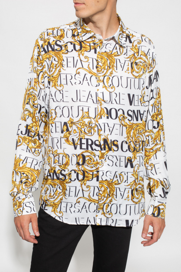 White shirt from Versace Jeans Couture. Fastened with buttons, this garment features a black logo, the brand’s signature pattern and long sleeves with buttoned cuffs.