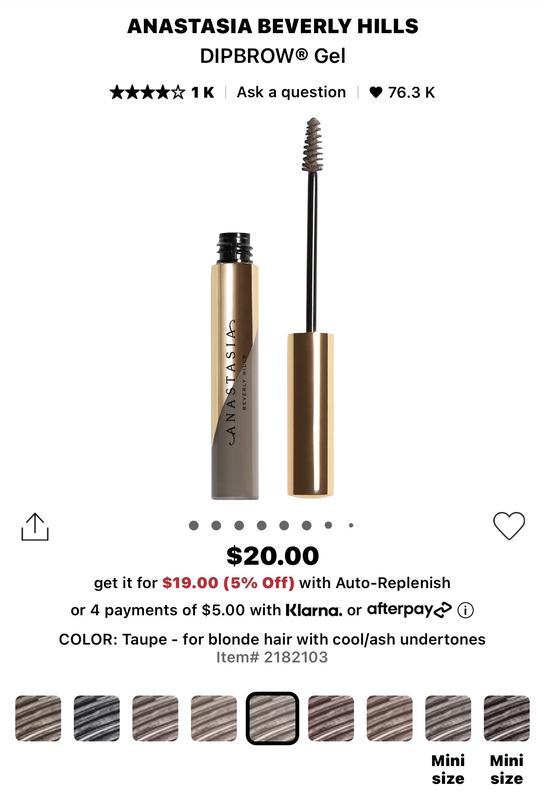 Эта водостойкая формула действует до 12 часов. Уникальный аппликатор позволяет наносить краску непосредственно на волоски бровей, а также на кожу для естественного вида. Он доступен в 11 оттенках, которые соответствуют ассортименту DIPBROW® Pomade Anastasia Beverly Hills.
