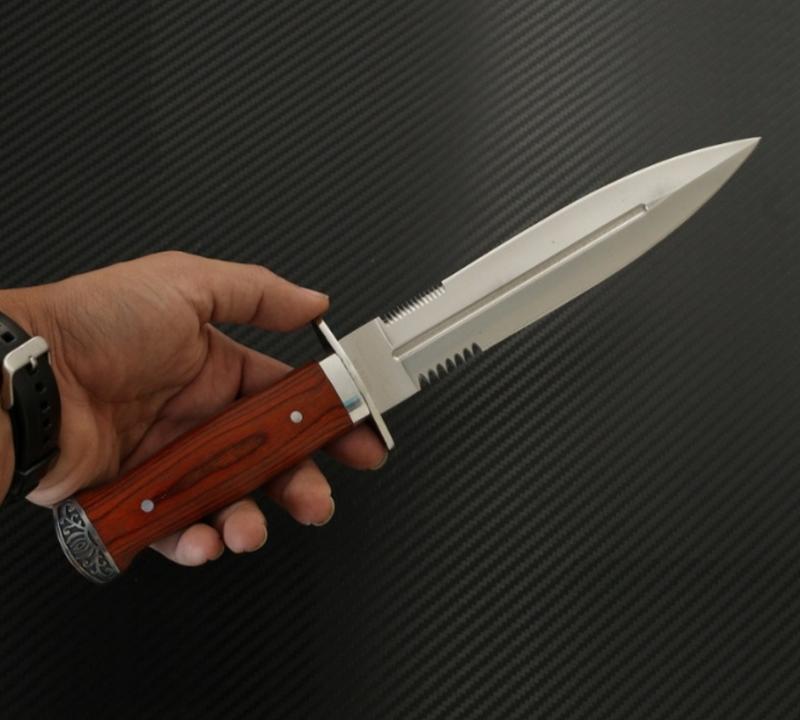 Ніж гарної якості з двогострим лезом, що мають зубці по 3 см з обох боків.