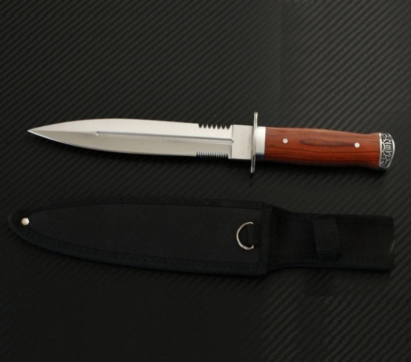Класичний кинджальний профіль має ефектний вигляд, дерев'яна ручка ідеально лежить у руці.