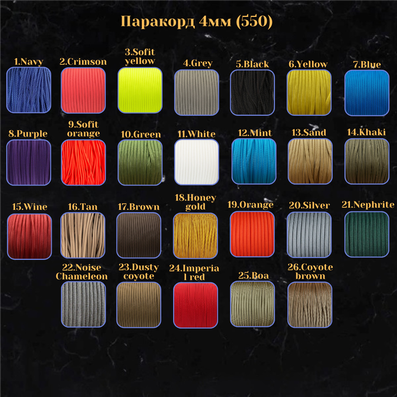 ⚡⚡⚡Цвета изделия можно выбрать на фото с таблицей цветов паракорда в изображениях. Укажите номер цвета и размер запястья в комментарии к заказу.