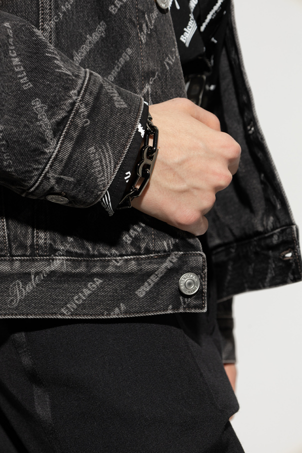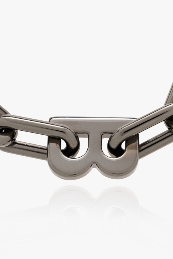 Dark silver-tone bracelet from Balenciaga. Made of brass, this item secures with a lobster clasp and features a ‘B’ appliqué.