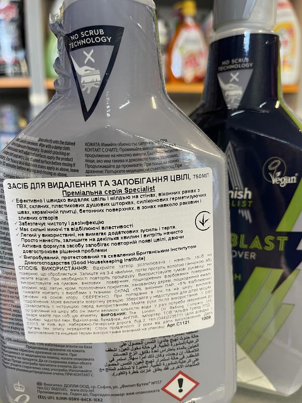 Крім цвілі очисник видаляє забруднення різного походження, застарілі та засохлі плями. Засіб залишає поверхні не тільки візуально, а й гігієнічно чистими.