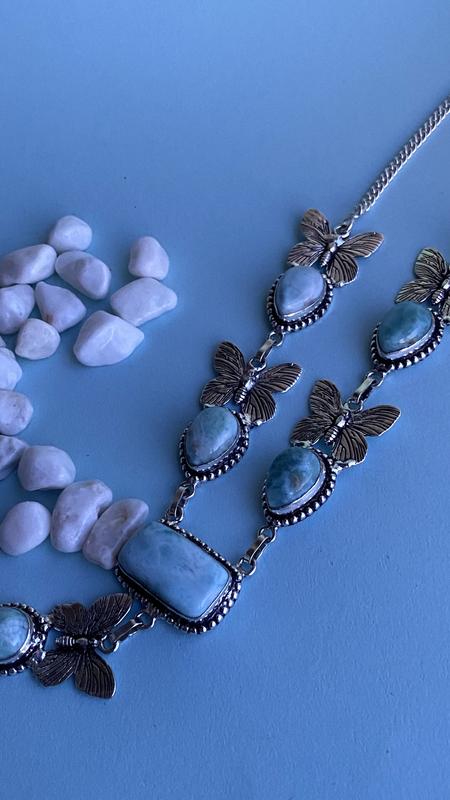 ПРОПОНУЄМО ВАМ КУПИТИ ЕЛЕГАНТНЕ КОЛЬЄ З НАТУРАЛЬНИМ КАРИБСЬКИМ ЛАРИМАРОМ В