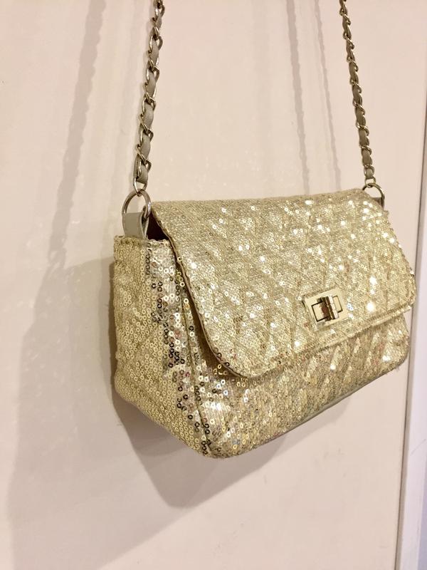 Ошатна сумка в золотих паєтках. Нова! Дуже красива! 18х28 см Довжина ремінця-123см Фірма - Atmosphere