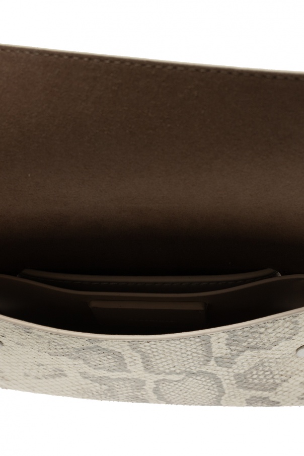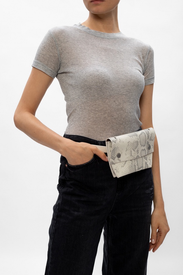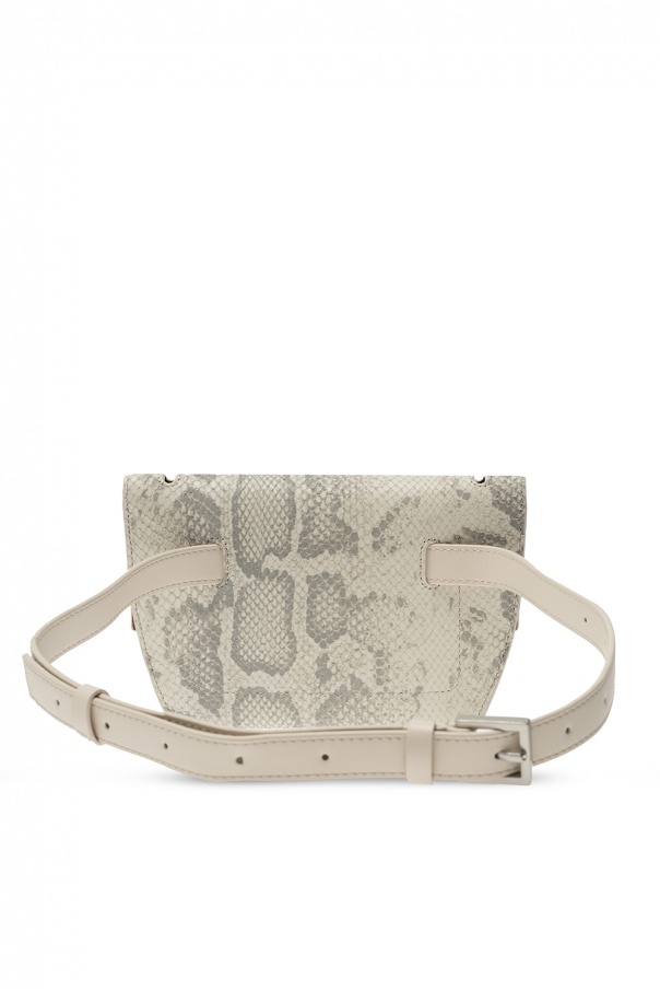 White and grey ‘Corbet’ belt bag from AllSaints. Crafted from leather, this design features an animal motif, snap fastenings, one internal compartment with a slip pocket, adjustable belt and silver-tone metal hardware.