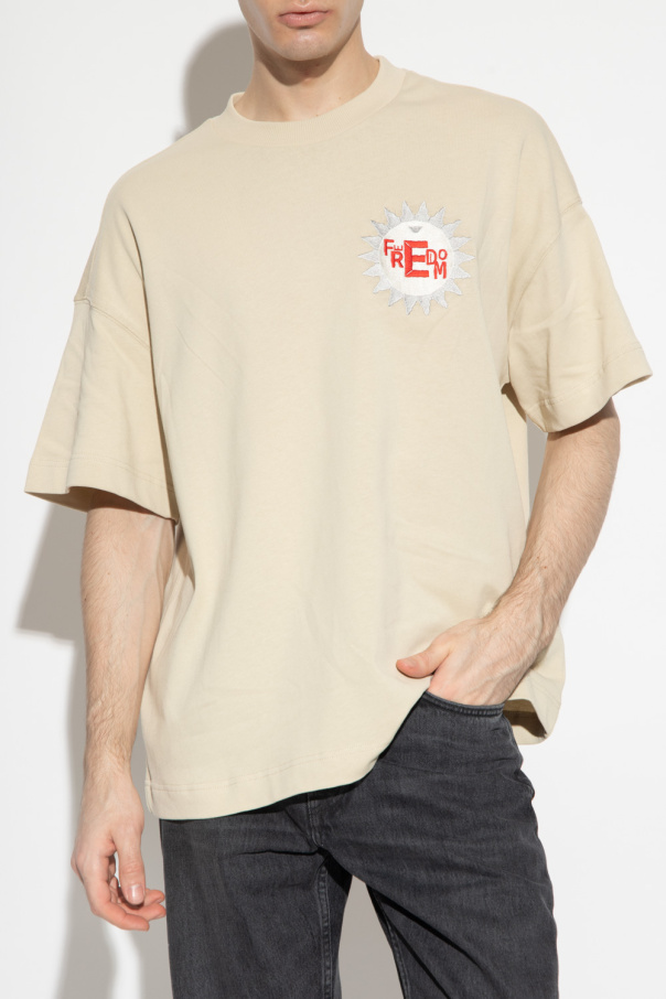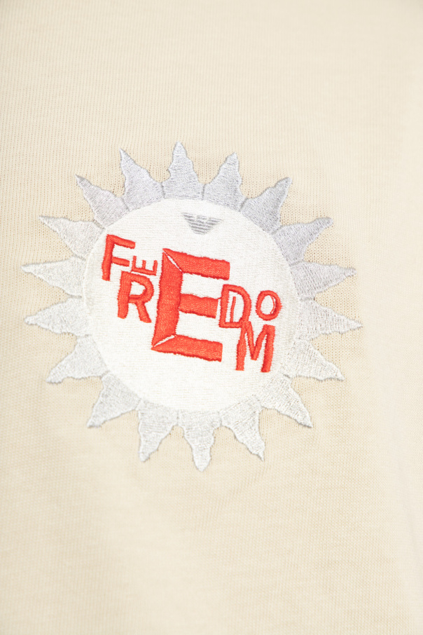 Beige T-shirt from Emporio Armani. Made of cotton, this short sleeve design features a decorative embroidery and ribbed crew neck.