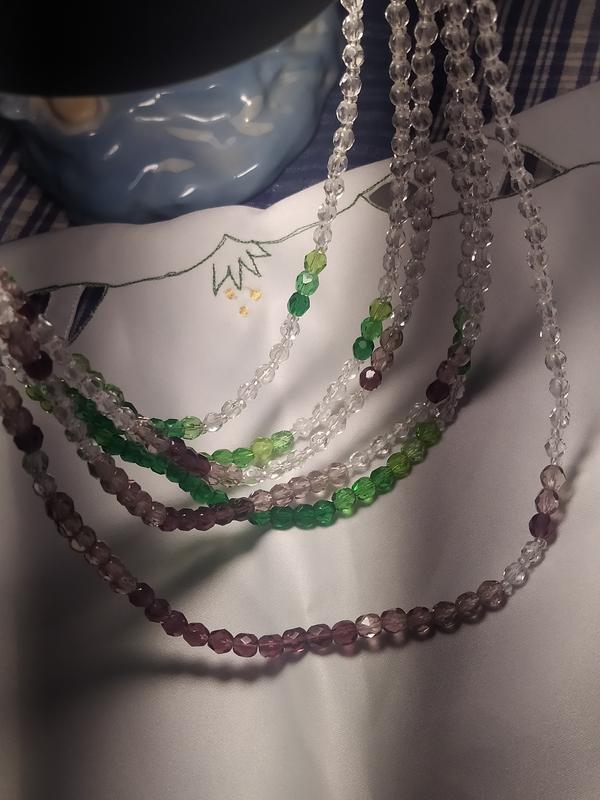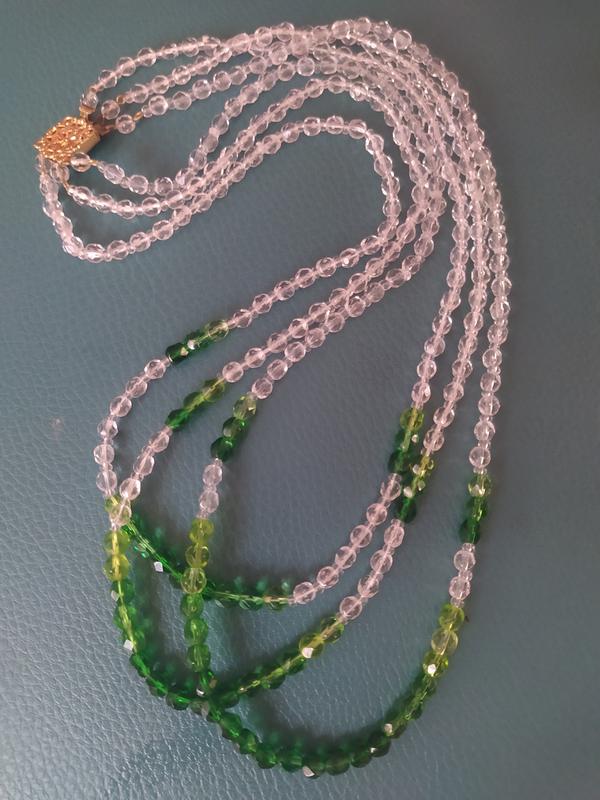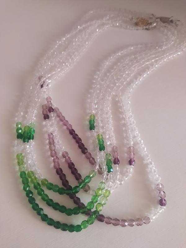 Чешские 3х рядные бусы. Одна модель , но разной расцветки/ сиреневые хрустальные бусины 3 х отттенков и такие же зеленые 3х оттенков./ ,,Родные ,, застежки и родная нить. Самая длинная нить- 70 см, короткая 60 см Шикарные бусы.