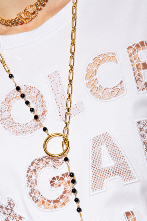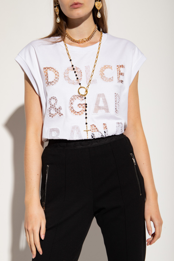 White tank top from Dolce & Gabbana, the ‘Tradizione’ collection. Made of cotton, this style features an elasticated collar and openwork logo detailing.