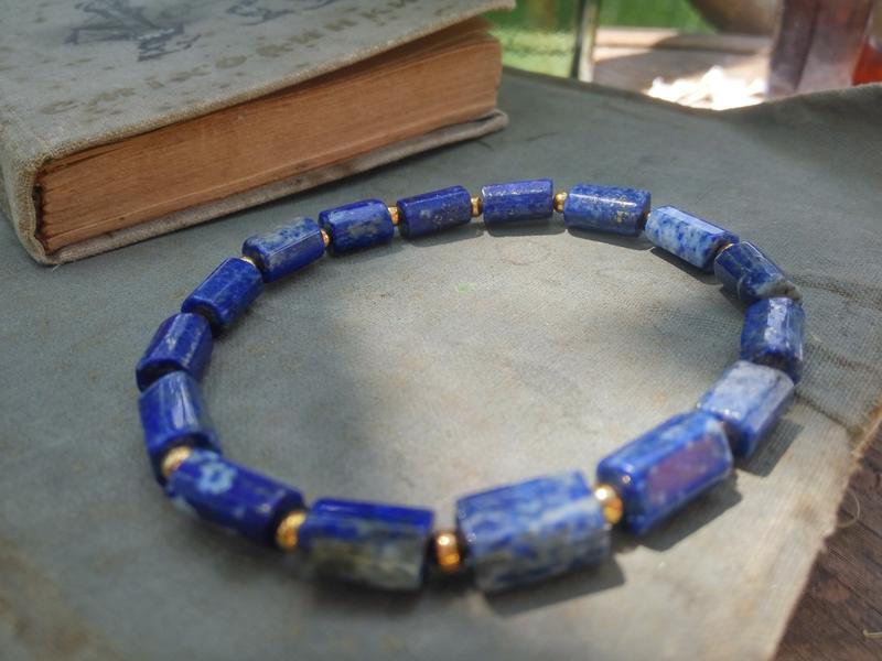Мужской браслет натурального камня лазурит (не окрашен) афганский, шариками гематита.