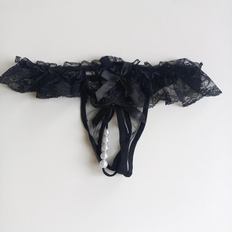 Чорні еротичні трусики з розрізом та перлинами