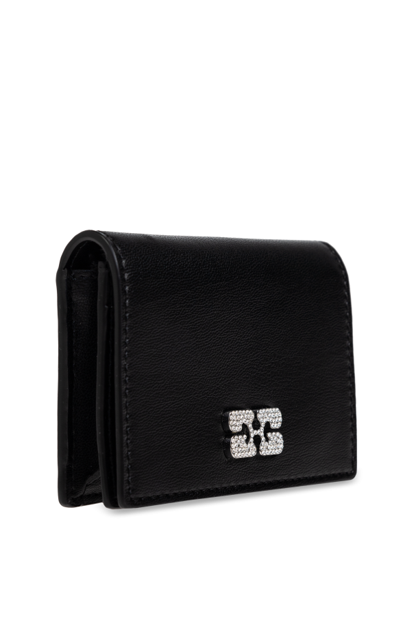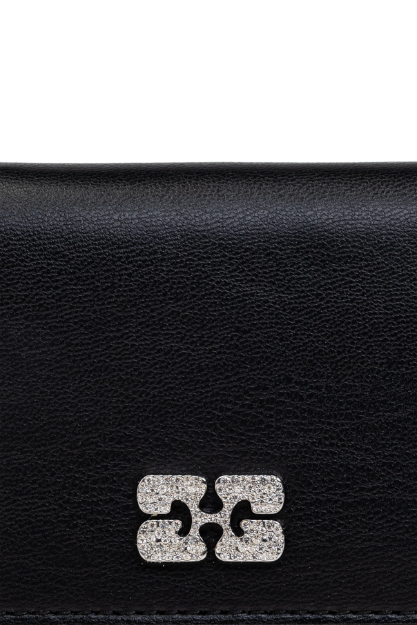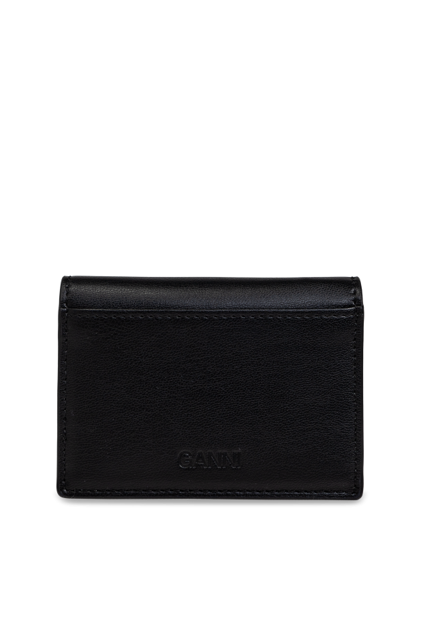 Introducing the GANNI Logo Wallet, an epitome of sophistication and elegance from GANNI\'s exclusive collection. Crafted from luxurious black eco leather, this wallet exudes a classic and refined appearance. The sleek, rectangular shape and smooth texture underscore its minimalist yet timeless design. Adorning its front is a distinctive metal logo, a hallmark of the brand’s exquisite craftsmanship. The interior is thoughtfully designed with compartments for cards and a space for bills, enhancing its functionality while maintaining a stylish edge. The wallet is secured with a snap closure, ensuring the safety of your essentials. An embossed GANNI logo graces the back panel, adding a touch of subtle elegance. Why Choose This Product? Classic Design: A quintessential accessory for those who appreciate luxury and simplicity. Functional Elegance: Features card slots and a bill compartment for organized storage. Distinctive Branding: Showcases GANNI\'s signature metal and embossed logos.