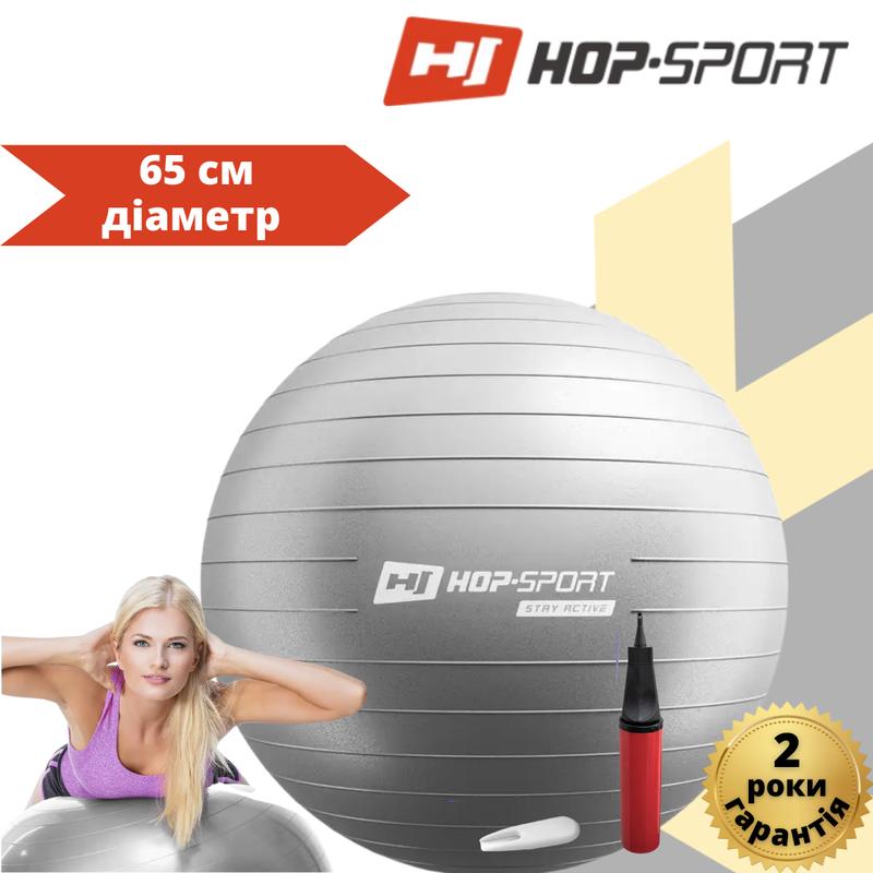 Мяч для фитнеса Фитбол Hop-Sport 65 см серебристый + насос 2020