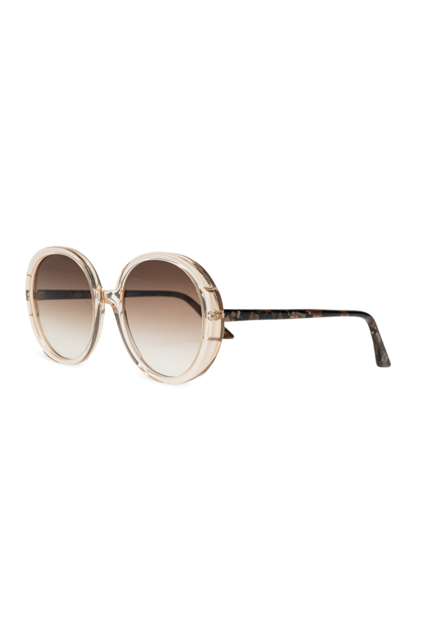 Brown, transparent sunglasses from Emmanuelle Khanh. Decorated with an embossed logo. Certified brown lenses with UVA/UVB protection. Item comes with a case fastened with a magnetic closure.