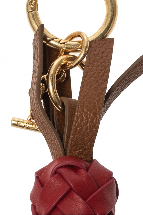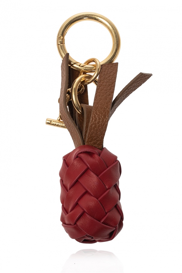 Gold-tone keyring with a leather pineapple appliqué in red and brown from See by Chloé.