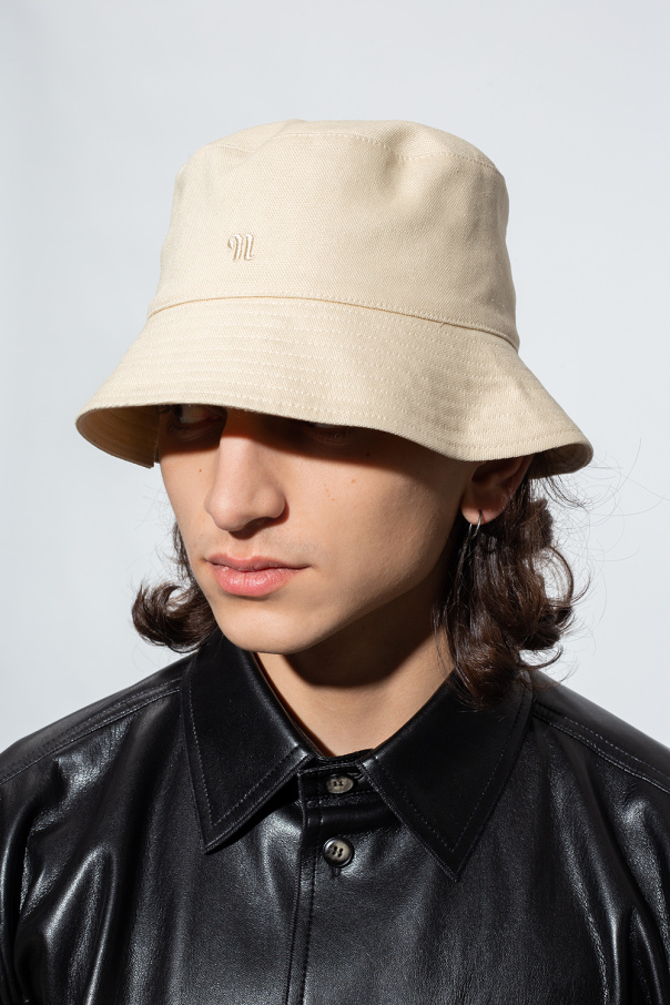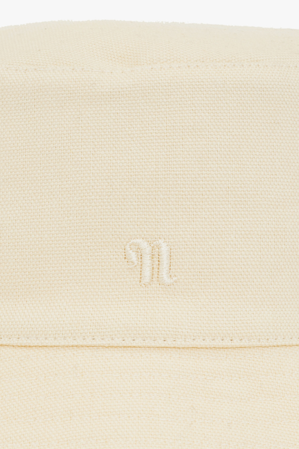 Light beige ‘Caran’ bucket hat from Nanushka. Made of organic cotton, this item is decorated with a cream logo embroidery.