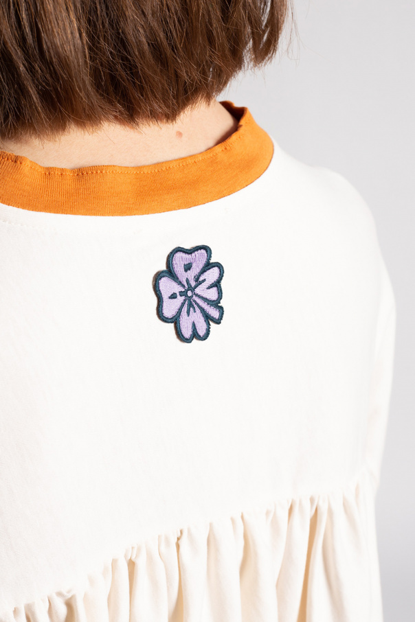 Cream T-shirt from Marni. Crafted from cotton, this design is complete with a purple patch and round neck in orange.