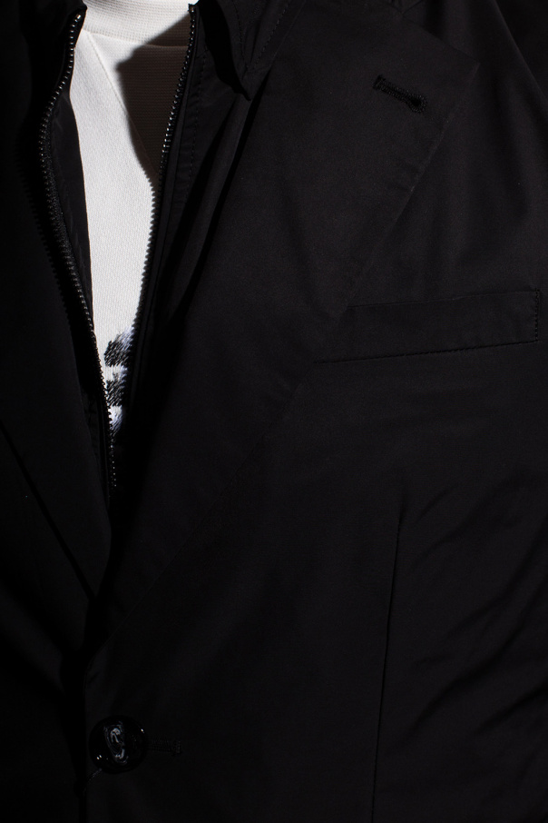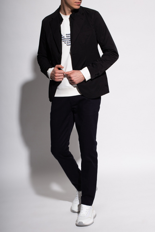 Black jacket from Emporio Armani. Fastened with buttons and a zip, this item features notch lapels and three pockets on the front – including two flapped ones. This item can be worn as a vest too.