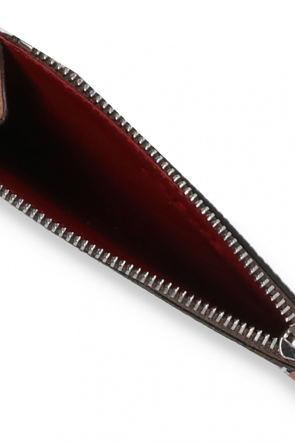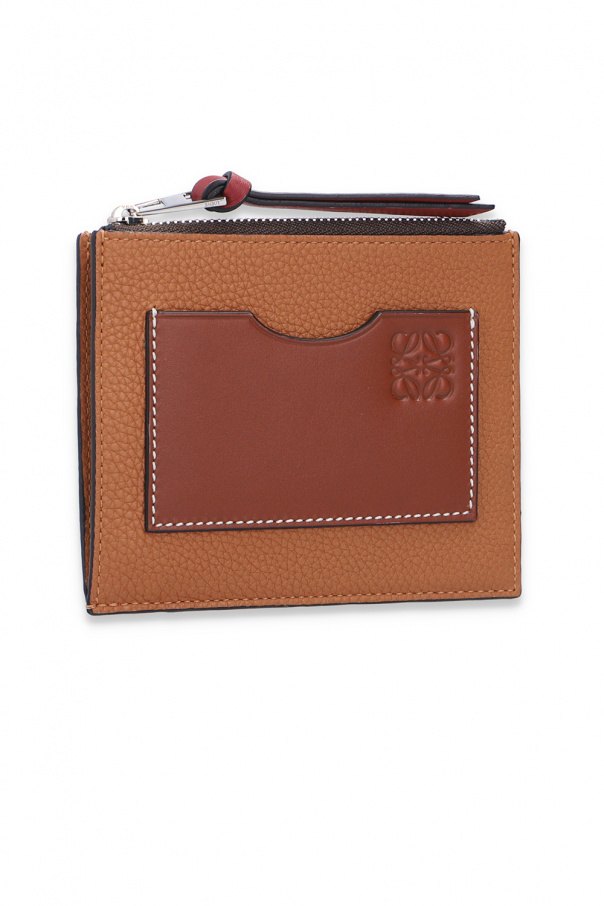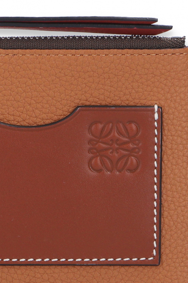 Brown card case from Loewe. Crafted from calf leather, this item fastens via a zip and showcases a logo-embossed card slot on the front, two slip pockets and four card slots on the back, one internal compartment and silver-tone metal hardware.
