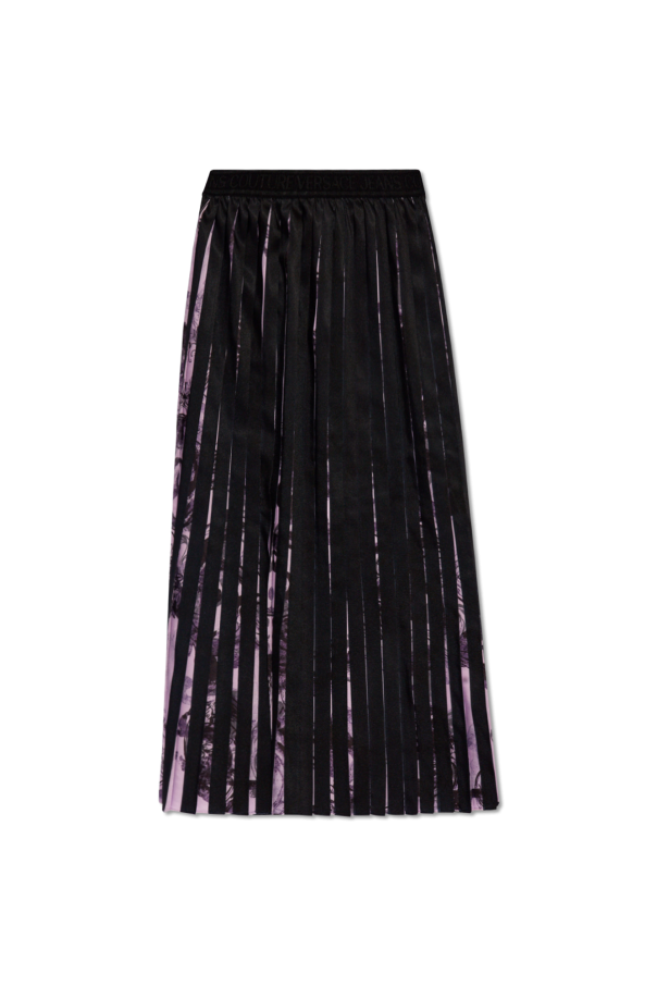 Pleated skirt in black and purple from Versace Jeans Couture. Embellished with a decorative graphic print, this style features an elasticated waistband with a logo.