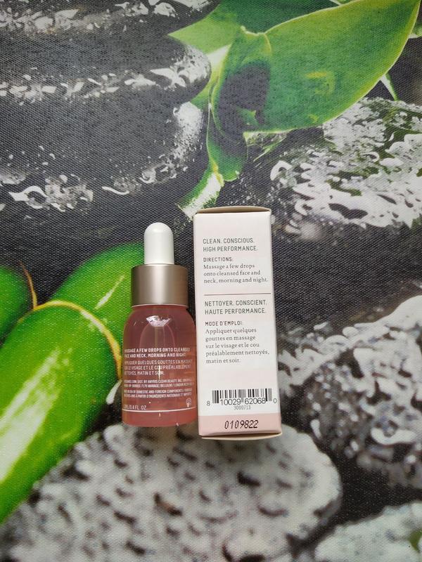 У складі масла натуральний сквалан, вітамін С, олія шиповника і екстракт дамасської троянди. Олійка має дуже легку текстуру, більше нагадує сиворотку та приємний аромат з нотками троянд.
