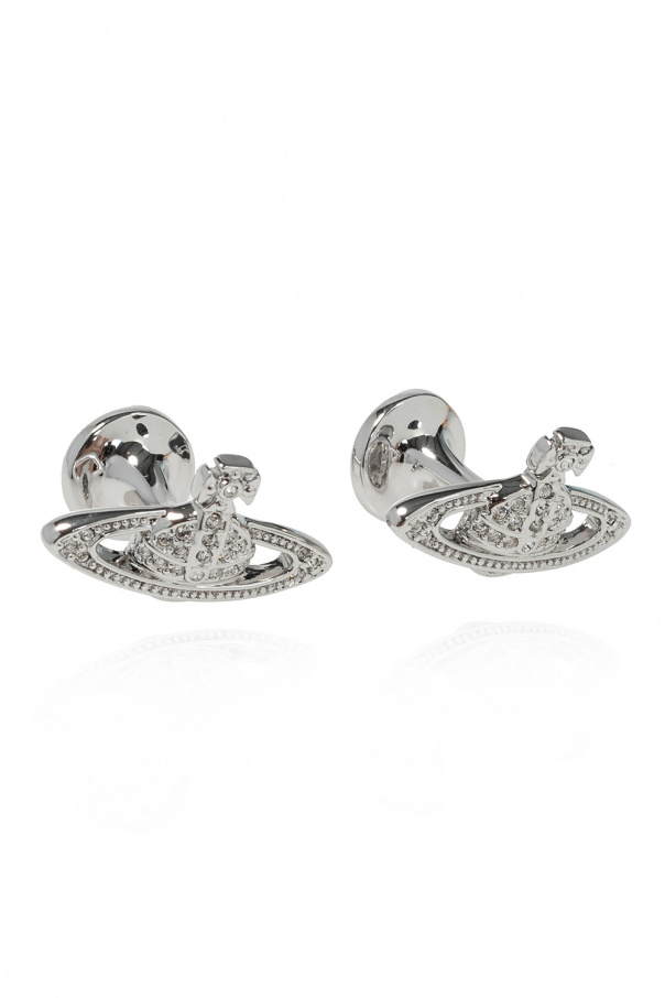 Silver-tone cufflinks from Vivienne Westwood. Made of brass, this pair features a logo appliqué embellished with Swarovski crystals.