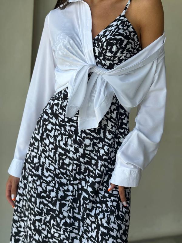 Костюм двійка сукня + сорочка комплект міді сукня комбінація плаття сарафан на тонких бретелях та сорочка біла класична чорний софт