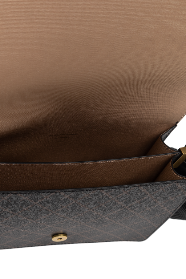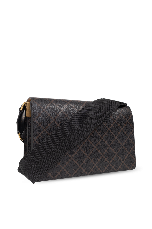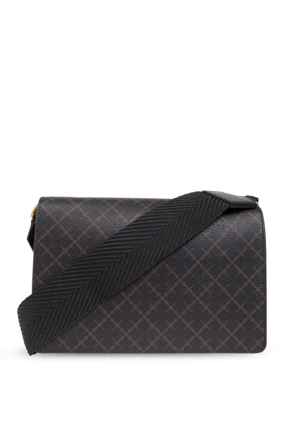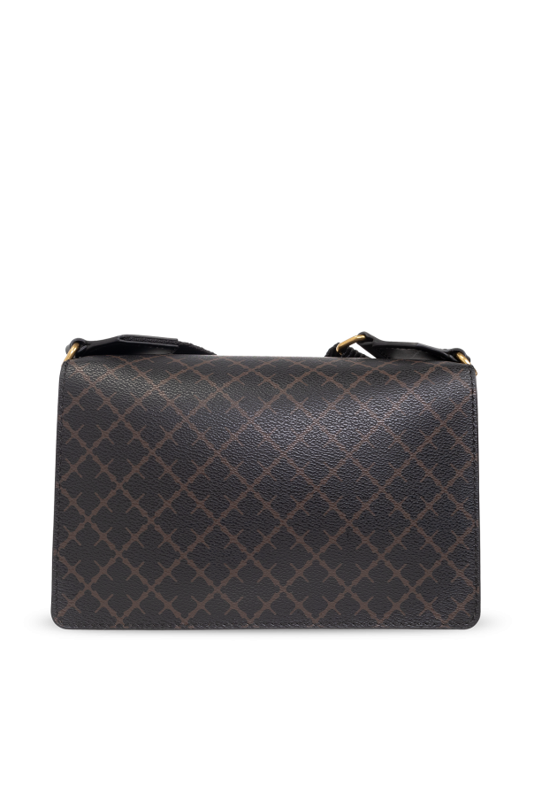Black ‘Loenna’ shoulder bag from By Malene Birger. Made of canvas decorated with a signature ‘Signature Flower’ print in beige, this model features a magnetic snap, adjustable strap with a gold-tone logo print, two separate internal compartments and antiqued gold-tone metal hardware.