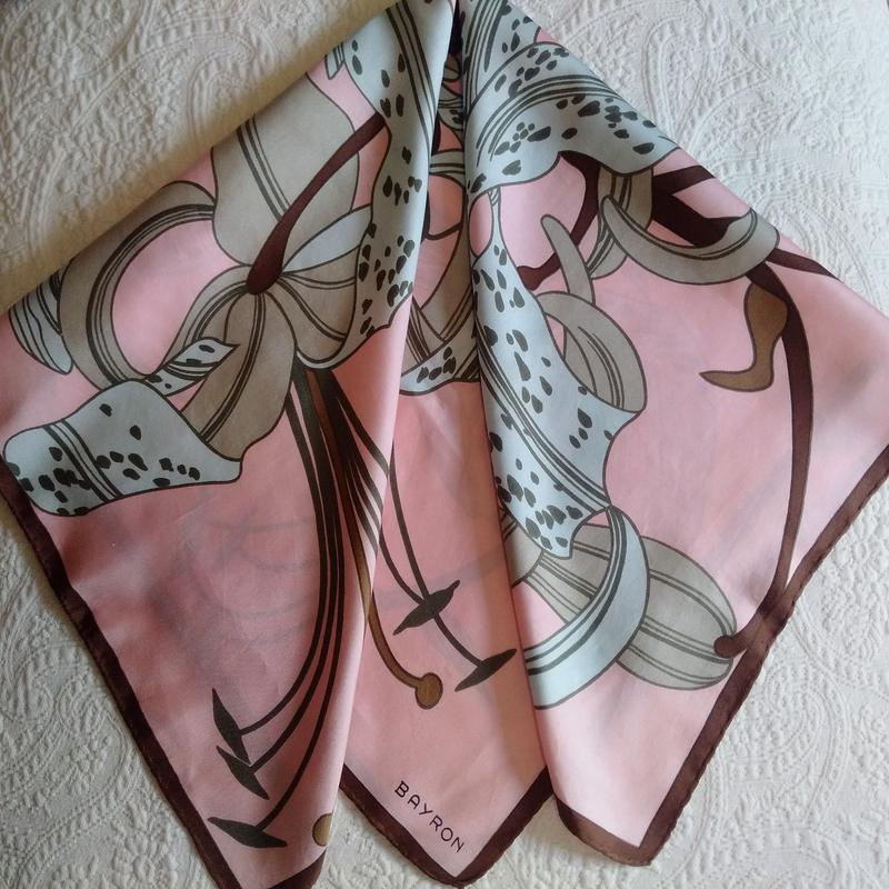 Подписной платок из саржевого шелка от бренда Bayron. Шов роуль.