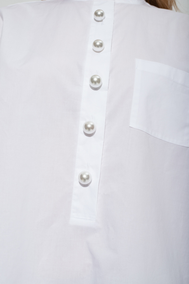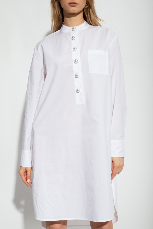 White ‘Jonella’ dress from Custommade. Made of cotton, this design features faux pearl buttons, a slip pocket and long sleeves with buttoned cuffs.