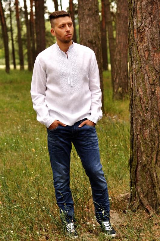 Эта рубашка-вышиванка имеет одну приятную деталь – патик, благодаря которому длинный рукав очень легко превращается в короткий.