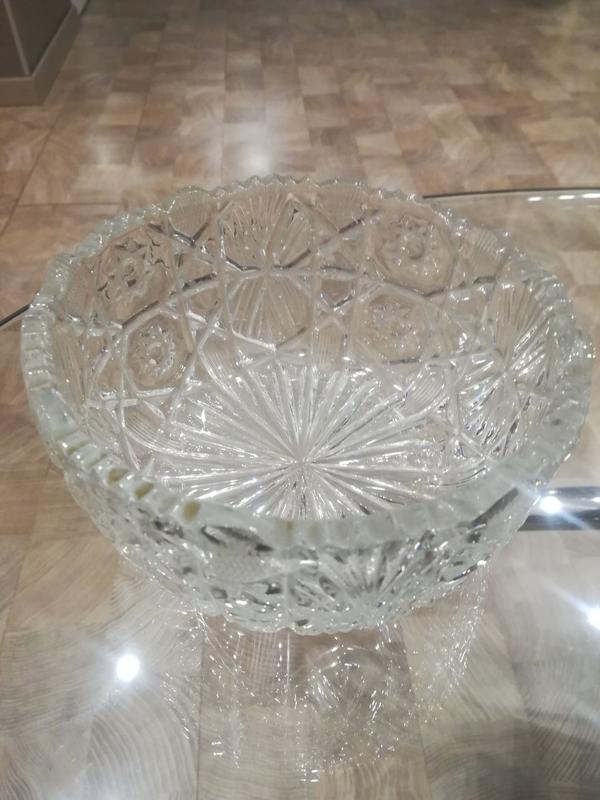 Кришталева салатниця, красива, акуратна та містка. Кришталь 80-х, дуже якісний. Стан ідеальний, сколів та тріщин немає. Висота салатниці 7,5 см, діаметр 15 см.