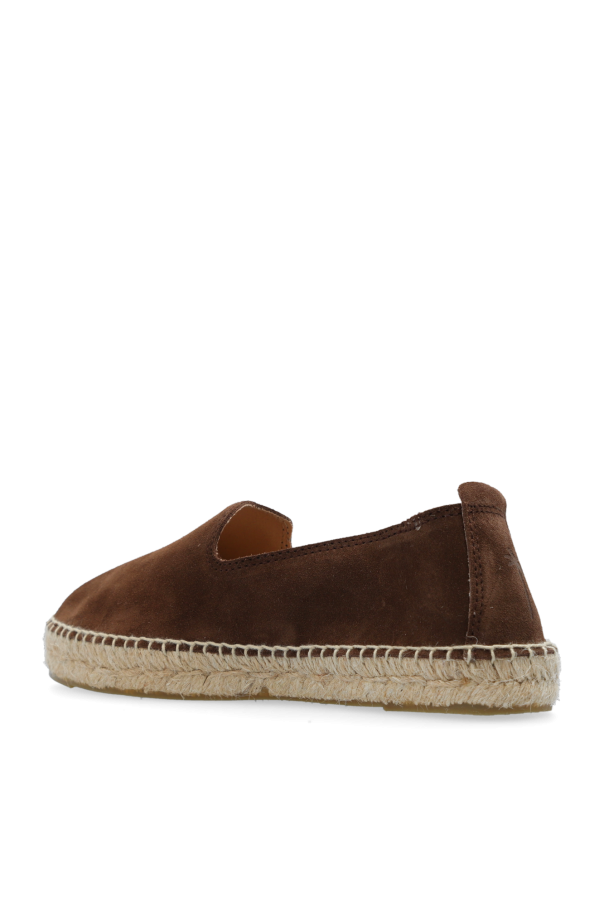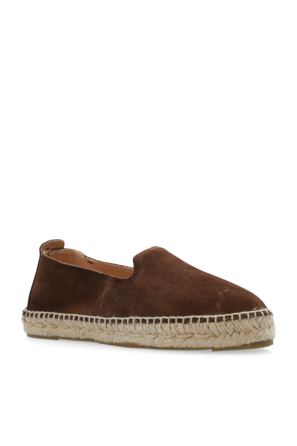 Introducing the epitome of summer sophistication: Manebí\'s Dark Brown Suede Espadrilles. These exquisite slip-on shoes blend the casual elegance of traditional espadrilles with the luxurious texture of suede, presenting in a rich, dark brown hue that evokes an air of understated elegance. Crafted with meticulous attention to detail, the shoes feature a smooth suede upper, seamlessly complemented by a flat sole made of natural jute, signifying an eco-friendly choice. The precision in stitching along the seams accentuates the high-quality craftsmanship inherent to Manebí\'s design ethos. The absence of fastenings or embellishments underscores the sleek, minimalist aesthetic, while the discreet branding on the inner sole subtly nods to the designer\'s prestige. With their classic, low-profile silhouette characterized by a rounded toe and absence of any ostentatious details, these espadrilles are the quintessence of refined summer footwear. The inner lining made of rubber ensures comfort, while the rubber sole promises durability and a gentle grip, making them perfect for both city strolls and beachside saunters. Why Purchase This Product? Eco-friendly Material: The choice of natural jute for the sole promotes sustainability. Luxurious Suede: The sumptuous suede upper offers both comfort and elegance. Artisanal Craftsmanship: Manebí\'s commitment to quality is evident in the precise stitching and finishing. Versatile Style: Perfect for elevating casual ensembles or complementing more formal summer wear.