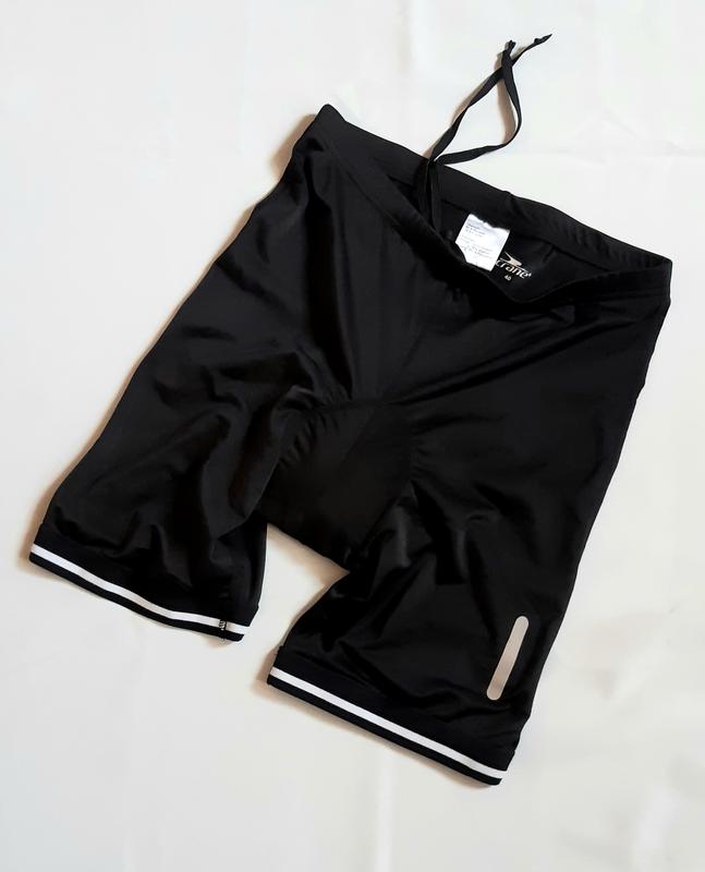 Вело шорты Crane черные женские со светоотражающим элементом, с памперсом, в поясе шнурок, внизу на силиконе, размер L. Новые без бумажной бирки.