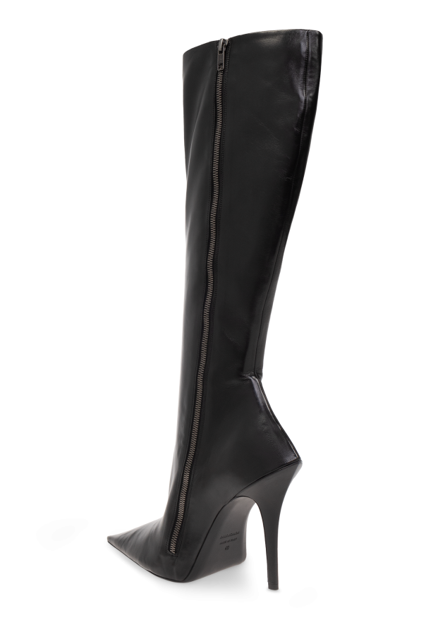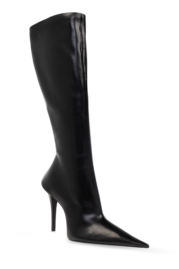Black boots from Balenciaga. Made of leather, this pair features a zip fastening, pointed toe, decorative heel and black leather sole.