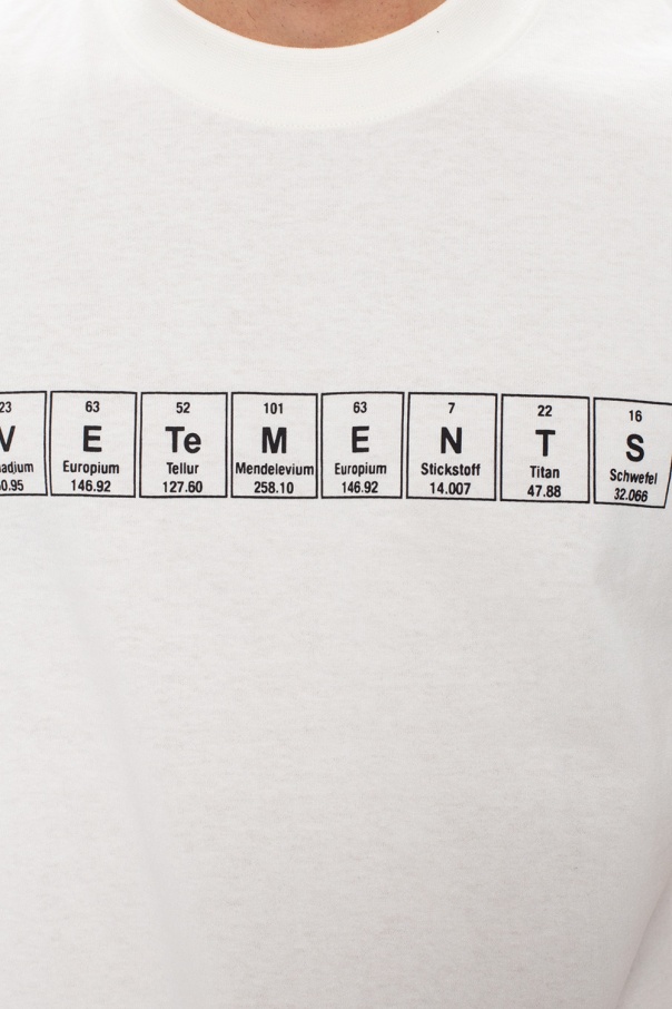 Cream crewneck T-shirt from VETEMENTS. Crafted from cotton, this design features a printed pattern in black.