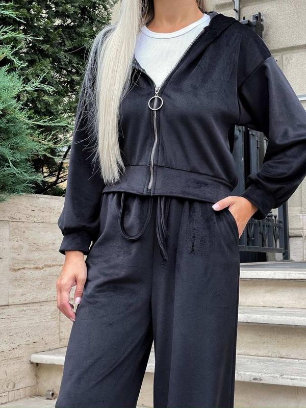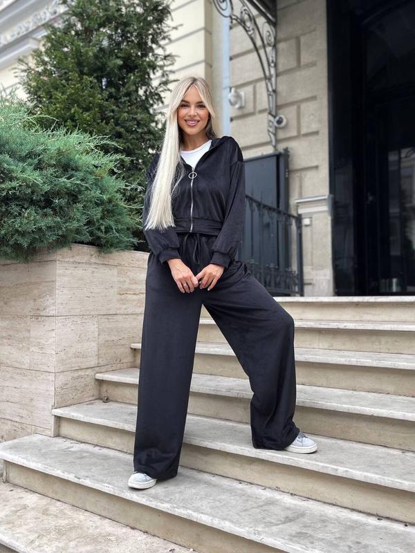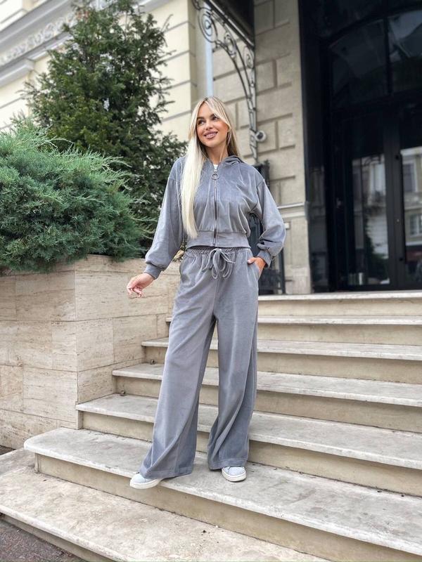 Зроблено в Україні?:Виробництво ,Матеріал:Велюр ,Тип костюму:З кофтою ,Призначення:Для повсякденного носіння ,Вид костюму:Двійка ,Сезон:Зима , Осінь , Весна , Демісезон ,Особливості моделі:З капюшоном , З кишенями , На змійці , - Shipping