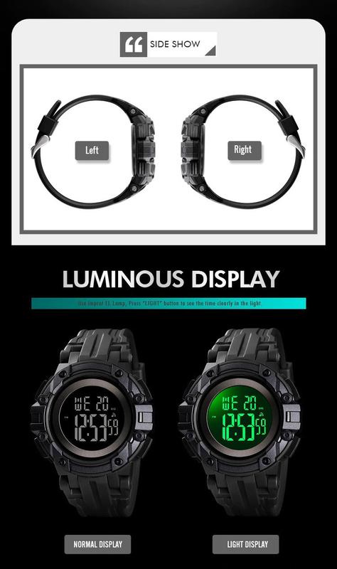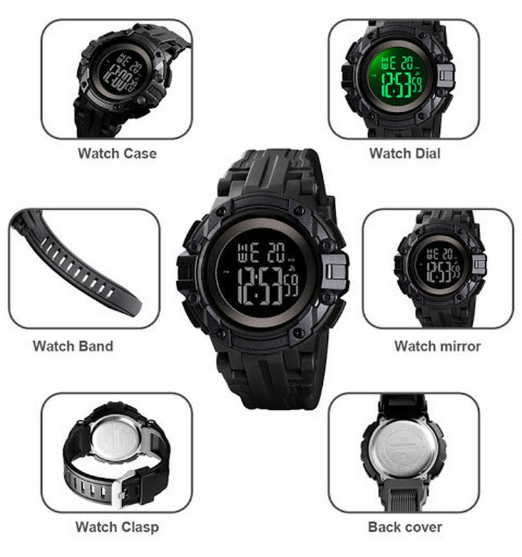 Материал ремешка:Каучук ,Пол:Для мужчин ,Стиль:Спортивный ,Механизм:Кварцевый ,Циферблат:Электронный ,Вид:Наручные ,Особенности:Водонепроницаемый корпус , Противоударные ,Функции:Будильник , Календарь , Подсветка , Секундомер ,Форма корпуса:Круглая , - Shipping
