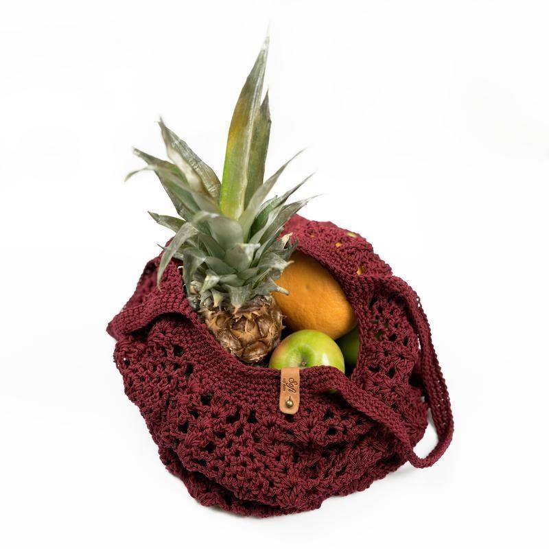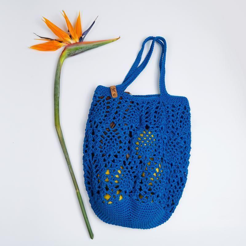 Сумочка связана крючком из прочного полиэфирного шнура.