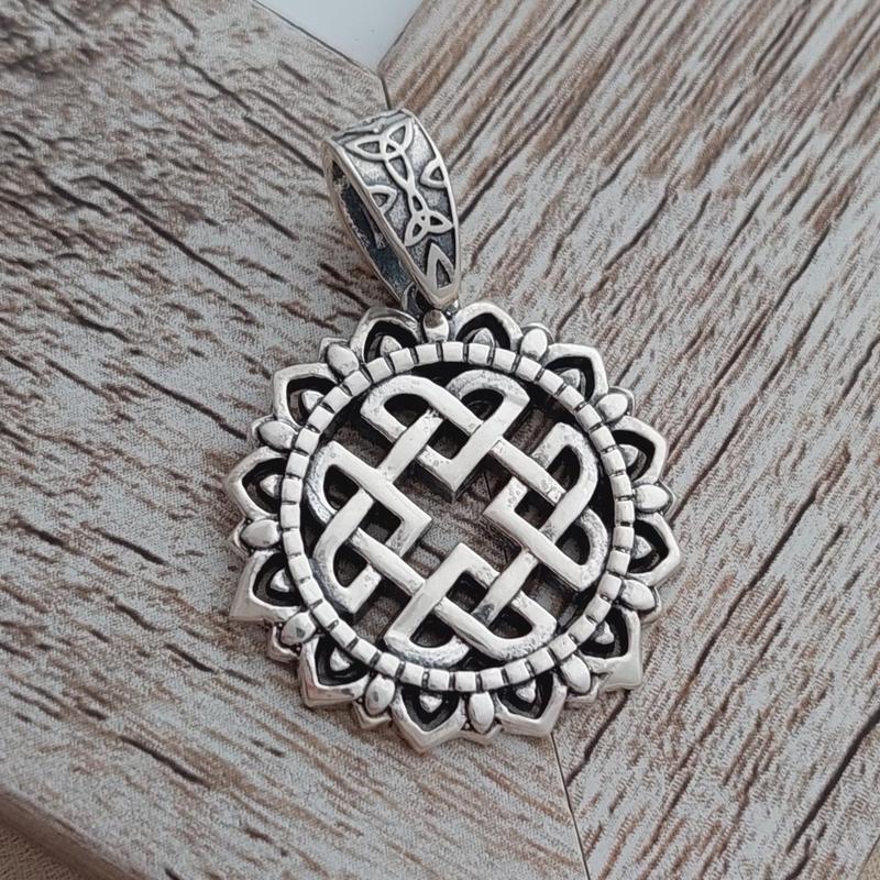 блеском и сиянием.Эта серебряная подвеска круглая с Узлом защиты 990-15-Ш - - прекрасный подарок