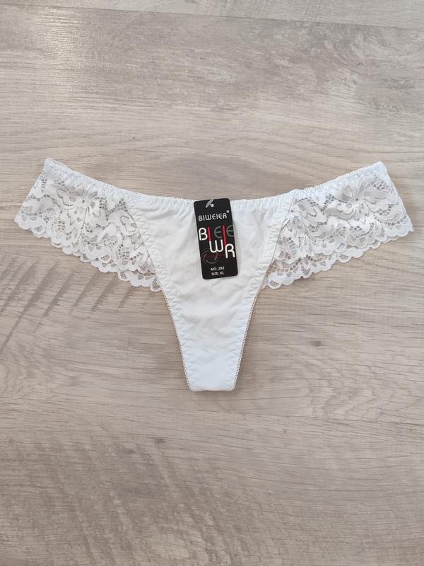 Продам красивые кружевные трусики стринги Biweier. Размер на этикетке XL, но мальрмерит. больше подходит на M, или максимум L.Состояние: НовоеЦвет:- Белый