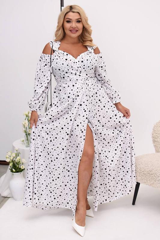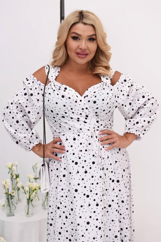 Особенности модели:На резинке , С декольте ,Длина рукава:Длинный ,Особенности:Коктельное , Большие размеры ,Сезон:Зима , Осень , Весна ,Принт:В горох ,Стиль:Романтический ,Фасон:На запах ,Описание