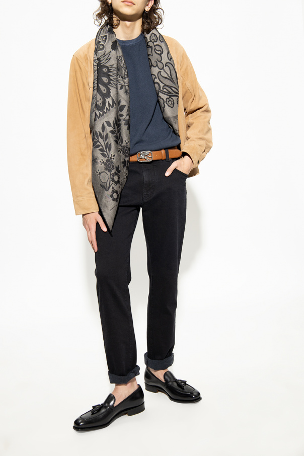 Black loafers from Salvatore Ferragamo. Made of smooth calf leather, this model sits on a brown rubber sole and showcases distinctive stitching details and tassels accompanied by the brand\'s signature Gancini buckle.