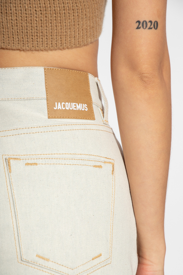 Light grey ‘Yelo’ jeans from Jacquemus. Crafted from organic cotton, this pair falls with straight legs and features a zip fly with a button, four slip pockets and a logo patch at the back.