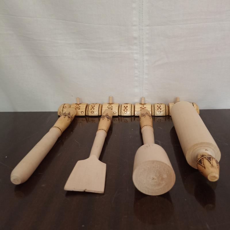 Деревянный набор из пяти предметов - резьба, выжигание, покрытие лаком