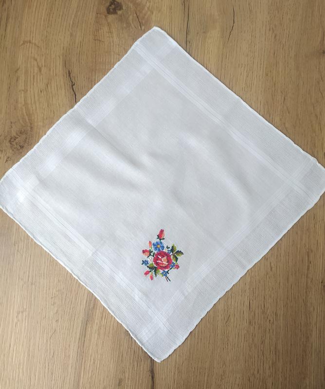 Батистовый носовой платок с микровышивкой крестиком. Край обработанный ручным швом роуль.
