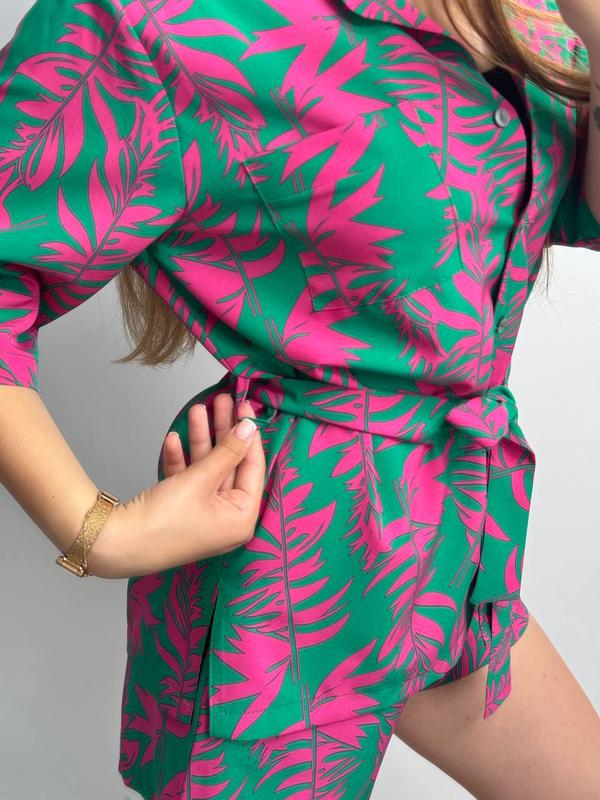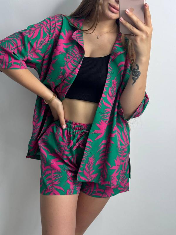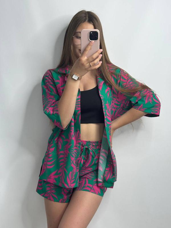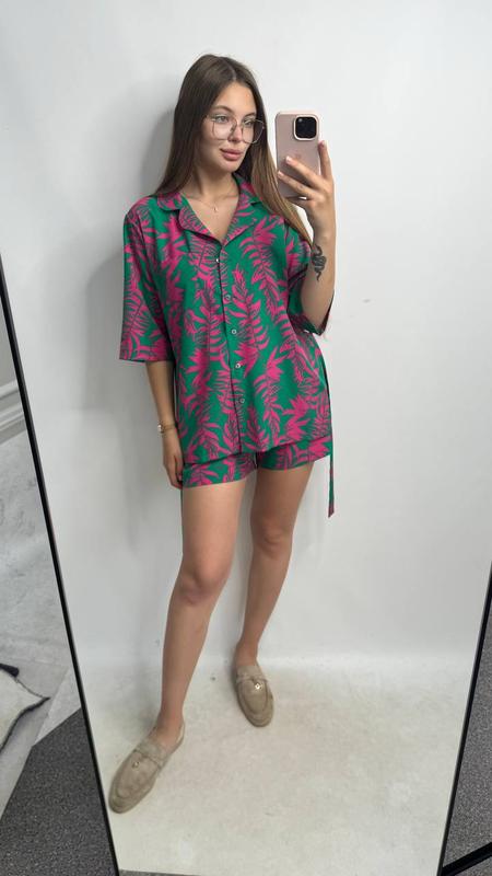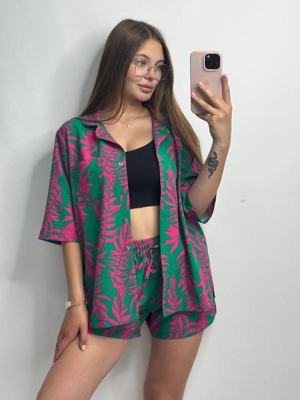 Легкий летний костюм в ярких принтах (clover), из ткани штапель шовк