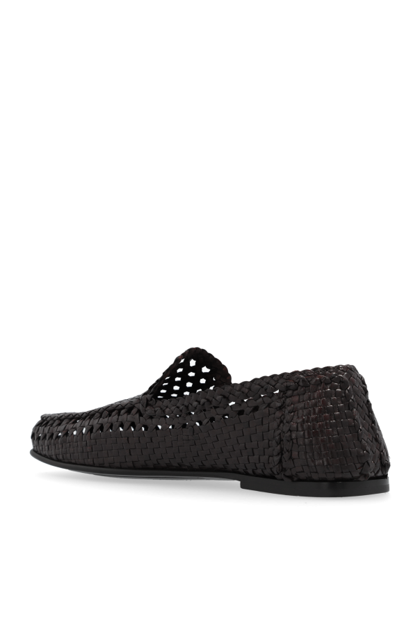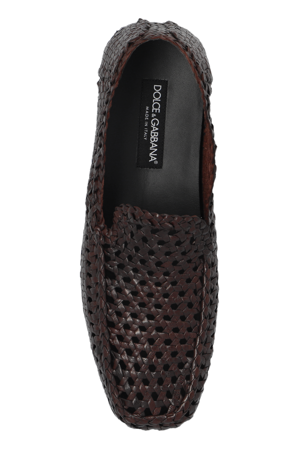 Introducing the epitome of luxury and refinement: Dolce & Gabbana\'s Leather Moccasins. Crafted from premium leather, these exquisite brown moccasins are a testament to high-end fashion and sophistication. The outer layer boasts a crocodile skin embossed pattern, lending an air of opulence and elegance that is unmistakably unique. The rich brown hue and pronounced texture captivate the eye, making these shoes a distinguished choice for the discerning gentleman. The shoes\' classic, elegant silhouette is complemented by a low heel and rounded toe, embodying the essence of traditional moccasin design. The absence of fastenings or embellishments underscores their sleek, slip-on nature, ensuring ease of wear without compromising on style. The interior features the iconic Dolce & Gabbana logo on the insole, a hallmark of authenticity and luxury that discerning clients seek. Why Purchase These Moccasins? Exclusivity and elegance encapsulated in crocodile skin embossed leather. Seamless blend of traditional design and luxurious craftsmanship. Signature Dolce & Gabbana branding, confirming unparalleled quality and style. Versatile wearability, perfect for both casual and formal ensembles.